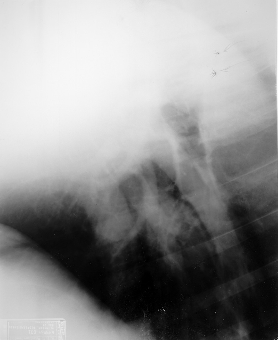 Static causes black branching artifact on the film due to exposure of the film to the elecrical spark of the static discharge.
